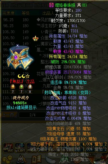 10、璎珞垂珠绦改8镶嵌7,紫属性醉剑1/1,独属于力号的属性,触发后增加精通必杀、连击的伤害。对道纹有一定要求的。